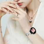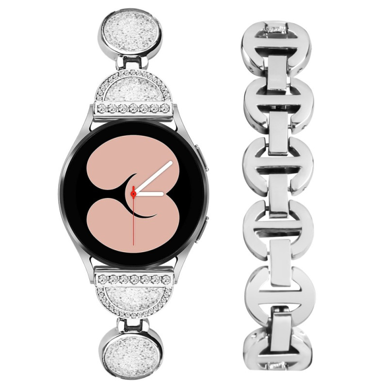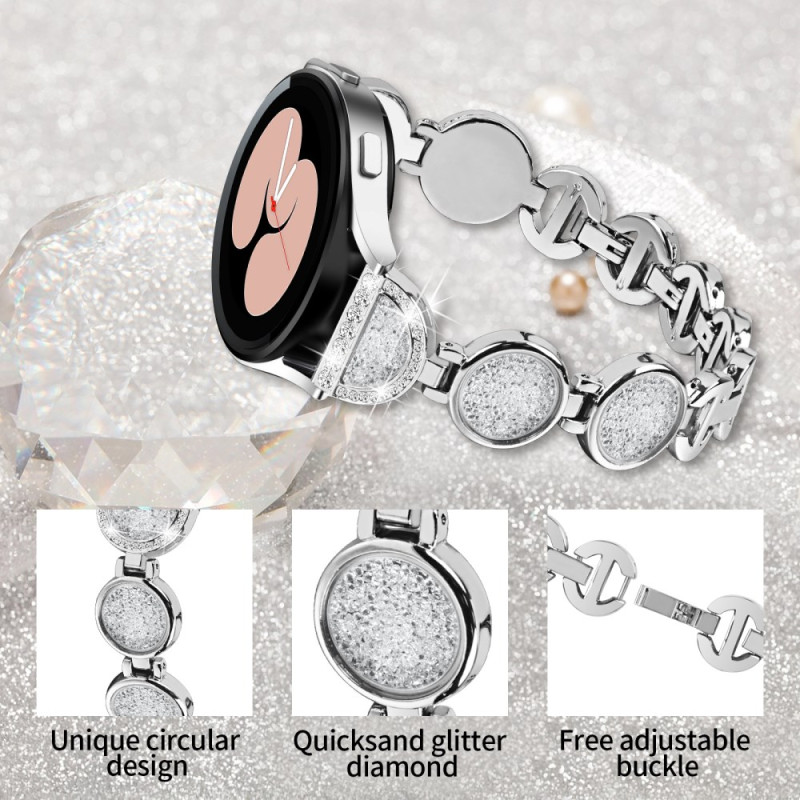 Descubra a nossa bracelete em metal para o Samsung Galaxy Watch FE 40mm. O seu design único com motivos circulares e decoração cintilante com strass oferece elegância e estilo.