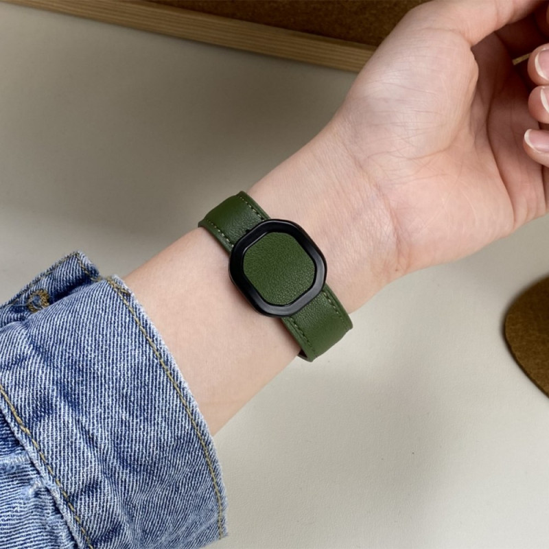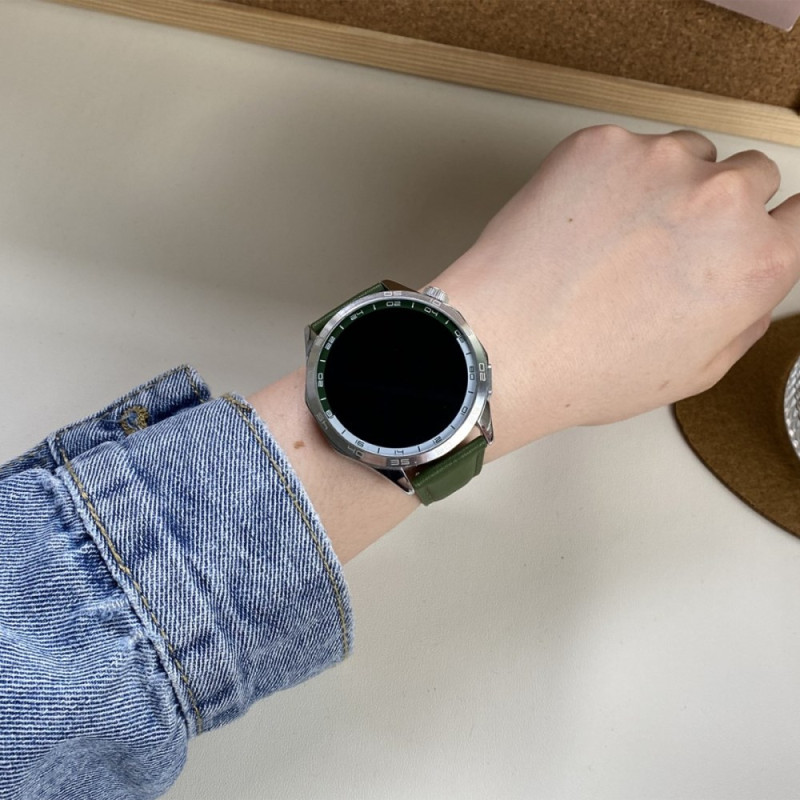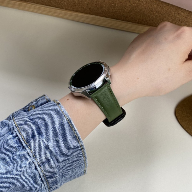 Descubra a nossa elegante e confortável bracelete de relógio em pele genuína. Com a sua prática fivela magnética, adapta-se a muitos relógios conectados.