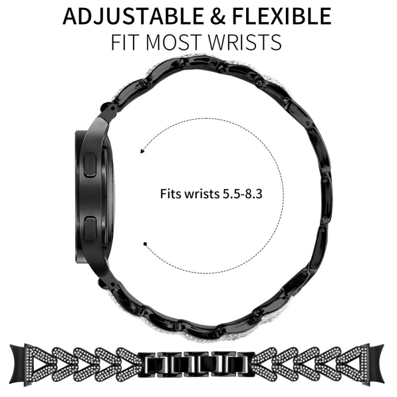 Descubra a nossa elegante bracelete de relógio para o Samsung Galaxy Watch7. Fabricada em liga de zinco de alta qualidade e decorada com strass, esta bracelete combina durabilidade e estilo.