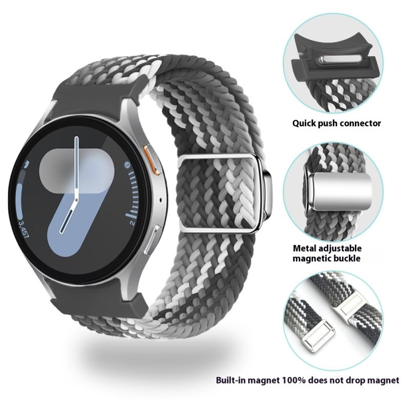 Découvrez notre bracelet tressé magnétique pour Samsung Galaxy Watch. Doté d'un connecteur rapide et d'une boucle magnétique ajustable, ce bracelet allie confort, durabilité et style.