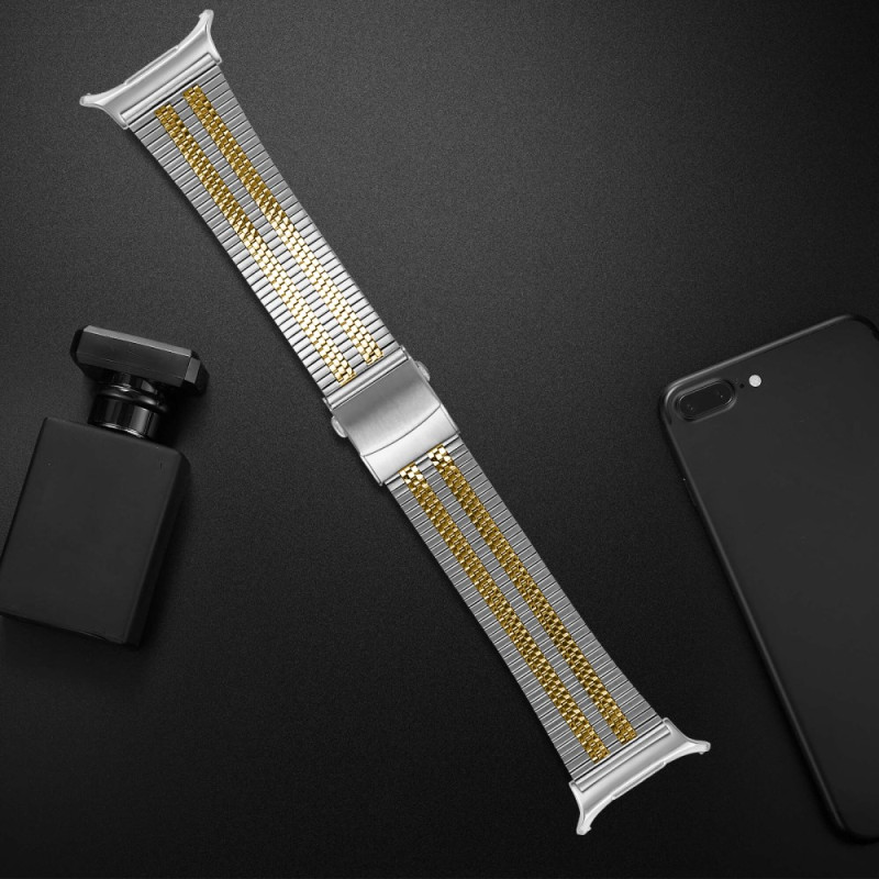 Descubra a nossa bracelete de metal com 5 pérolas para o Samsung Galaxy Watch8. Fabricada em aço inoxidável de alta qualidade, esta bracelete elegante é perfeita para ocasiões profissionais e casuais. O seu design sofisticado e o acabamento duradouro fazem dela um acessório versátil e elegante para o seu relógio.