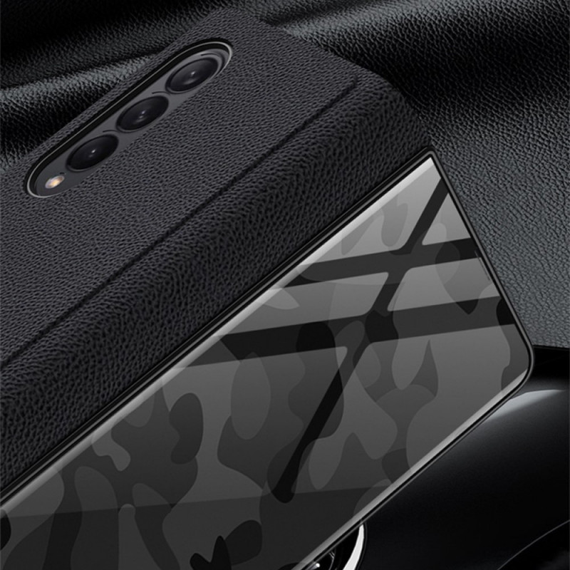 Sua Samsung Galaxy Z Fold 3 5G está idealmente protegida com este design de camuflagem vidro temperado e capa de couro.