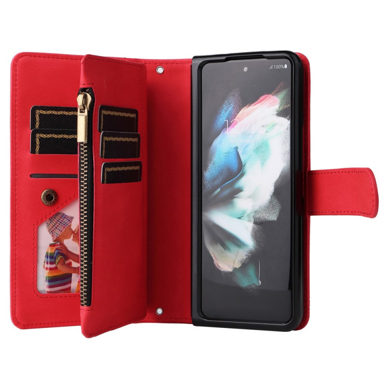 Um capa comercial e multifuncional, perfeito para o Samsung Galaxy Z Fold 3 5G com vários suportes de cartões e um rebite decorativo.
