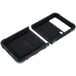 Pensado em duas partes, segue perfeitamente o movimento de dobragem do telemóvel dobrável.
