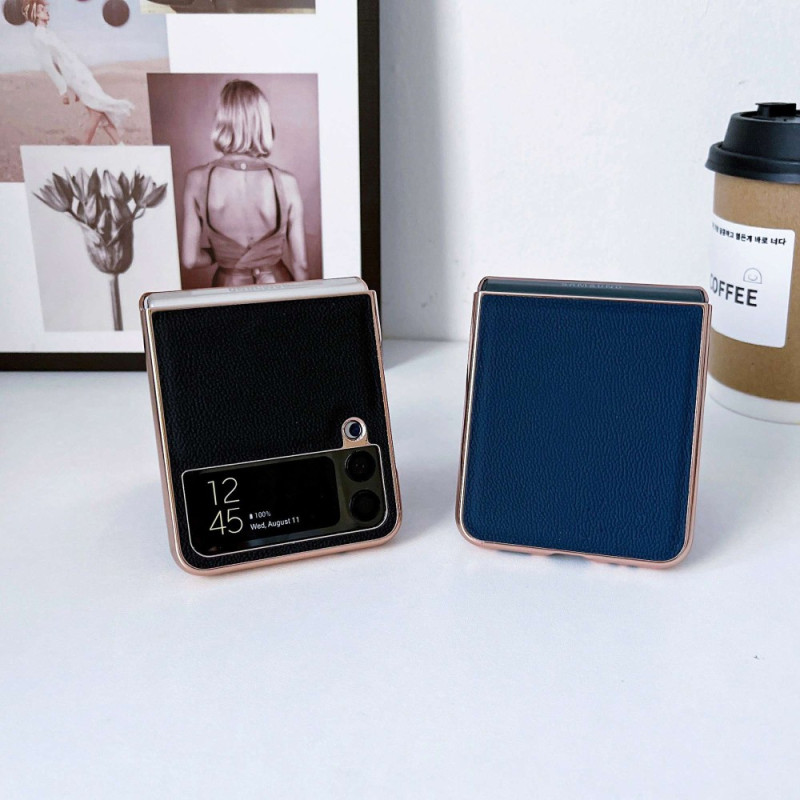 Coque Samsung Galaxy Z Flip 4 Vrai Cuir Rebords Dorés