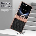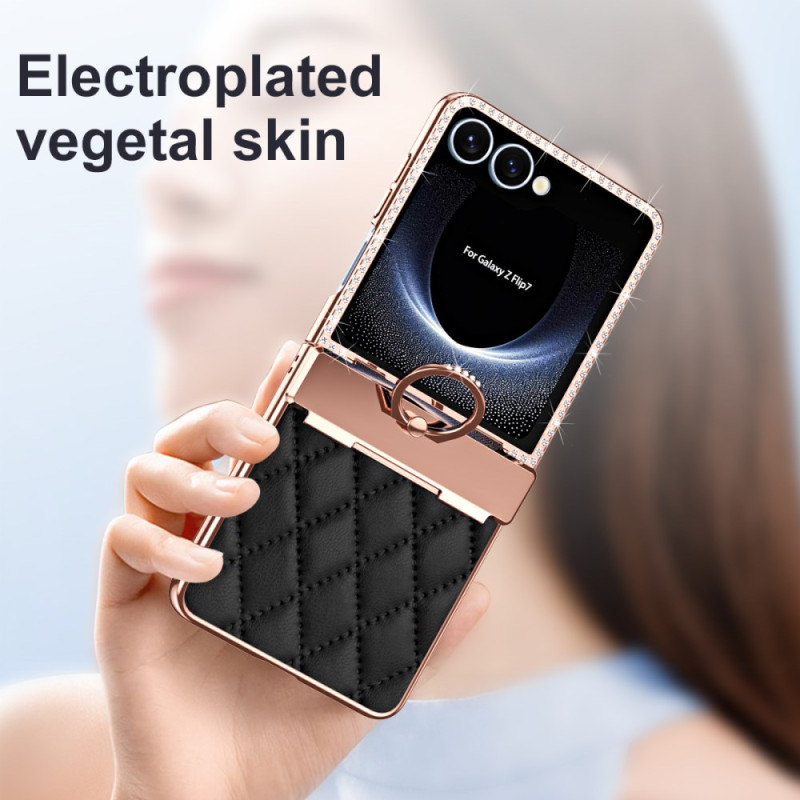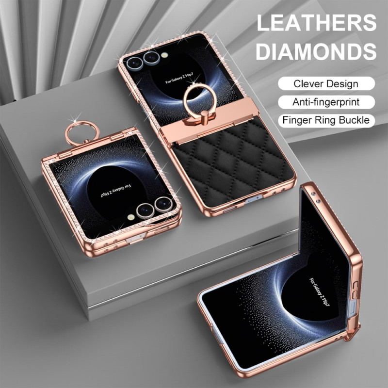 Descubra a nossa elegante capa para o Samsung Galaxy Z Flip 7 5G. Combinando couro texturizado e PC, oferece uma proteção superior com um sofisticado design rômbico.