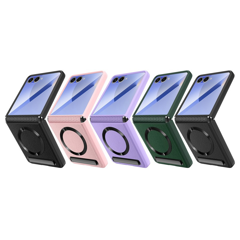 Descubra a nossa inovadora capa protetora para o Samsung Galaxy Z Flip 7 5G. Com um anel magnético compatível com MagSafe com um padrão único, oferece uma proteção PC+PU fiável, suporte integrado e acessibilidade total. Inclui películas de proteção para o ecrã e a lente.
