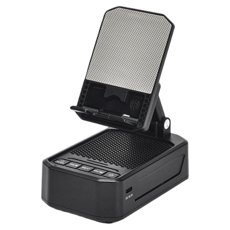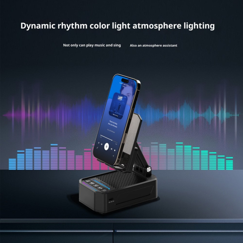 A convergência de áudio, potência e ergonomia visual é agora combinada num único acessório de secretária. Este altifalante incorpora a funcionalidade 3 em 1: altifalante, suporte para telemóvel e bateria externa (2000mAh). O sistema de altifalante duplo de 52 mm, complementado por um diafragma de graves, garante uma experiência de som envolvente e de alta fidelidade (Bluetooth 5.3). O dispositivo detecta e inicia a reprodução sem fios quando o telemóvel é colocado no suporte. O seu design dobrável e a iluminação ambiente (7 cores) tornam-no ideal para criar o ambiente perfeito no escritório ou em casa.