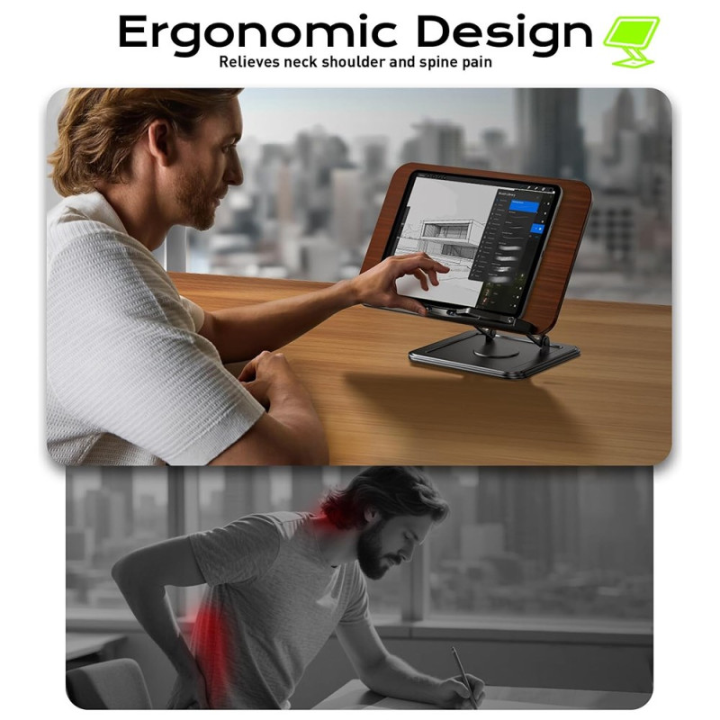 Da elegância natural da madeira à robustez do aço-carbono, este suporte é a solução versátil para qualquer espaço de trabalho. Fabricado em MDF e aço-carbono, proporciona uma estabilidade fiável para trabalhar ou escrever diretamente. Sete níveis de ajuste de altura permitem aos utilizadores encontrar o ângulo de visão ideal, corrigindo a postura e reduzindo a fadiga ocular. A capacidade de rotação de 360 graus oferece a máxima flexibilidade, permitindo que o ângulo de visão seja ajustado para computadores portáteis, tablets ou livros.
