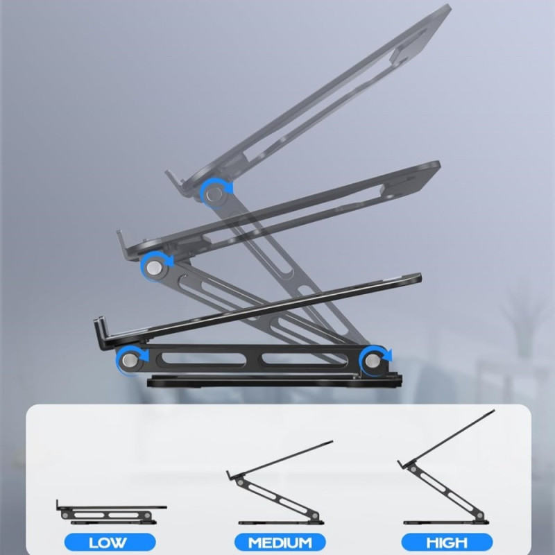 Reduzir a tensão no pescoço e melhorar o conforto visual são os principais objectivos desta solução de suporte ergonómico. Este suporte permite-lhe ajustar a altura e o ângulo do seu computador portátil (10" a 15,6") para uma postura ideal. O seu design não paralelo promove uma melhor circulação de ar e uma maior dissipação de calor, mantendo o desempenho do dispositivo. Construído em alumínio e plástico de alta qualidade, garante uma excelente estabilidade. O mecanismo de dobragem torna-a extremamente portátil, facilitando o seu transporte para utilização no escritório ou no exterior.