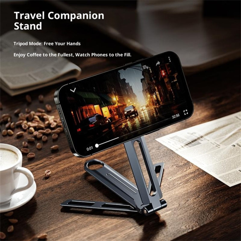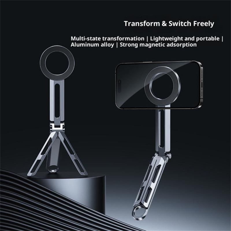 Concebido para profissionais em movimento, este suporte elimina a fricção da montagem com fios graças à tecnologia MagSafe. Fabricado em liga de alumínio durável, tem uma estrutura estável e pesa apenas 100 gramas. O seu design totalmente dobrável (15x6,5x2,5cm) facilita a arrumação numa pasta ou mala. O sistema MagSafe integrado fixa instantaneamente e de forma segura o seu telemóvel magneticamente. O suporte adapta-se a smartphones de 4 a 7 polegadas, proporcionando uma solução elegante de mãos-livres para o escritório ou para a mesa de viagem.