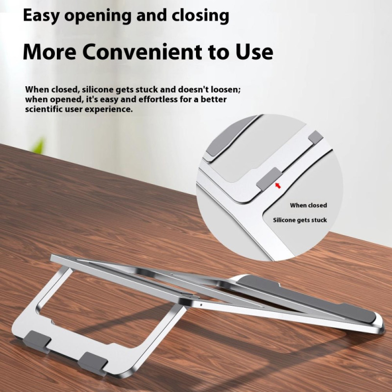 O conforto do utilizador e o desempenho optimizado do dispositivo são as duas funções principais deste suporte. Fabricado em liga de alumínio espessada, proporciona uma base robusta para computadores portáteis e tablets até 17,3". O design aberto favorece a circulação do ar, contribuindo para uma melhor dissipação do calor. Ao elevar o ecrã, corrige o ângulo de visualização, reduzindo eficazmente a tensão no pescoço e nos olhos. O seu design dobrável e leve (260 g) torna-o fácil de transportar para utilização no escritório ou no exterior.