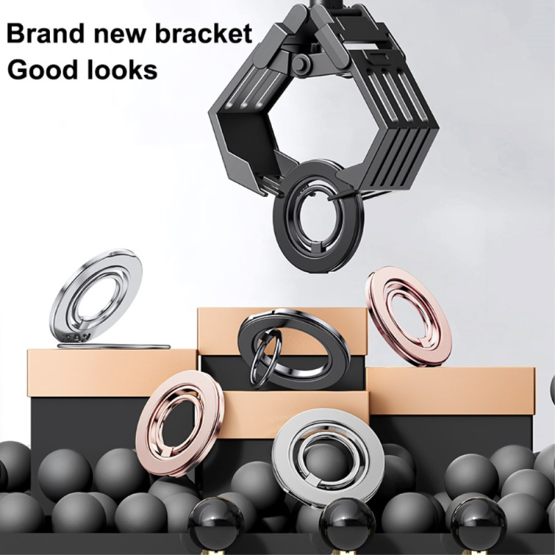 Descubra o derradeiro suporte magnético para telemóvel compatível com MagSafe. Rotação suave de 360°, função de anel e suporte 2 em 1, ajuste multi-ângulo para uma utilização óptima em modo retrato ou paisagem. Design compacto e dobrável.
