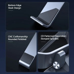 Este suporte em forma de X combina estabilidade, elegância e desempenho para proporcionar uma óptima experiência de trabalho. A sua estrutura monobloco em liga de alumínio de alta densidade proporciona um suporte seguro e resistente para os seus dispositivos até 17". O seu design aberto assegura uma óptima circulação de ar, evitando o sobreaquecimento. Ajustável em altura e ângulo, adapta-se facilmente à sua postura para um conforto ergonómico prolongado. Leve, dobrável e resistente a riscos, o P70 é um acessório essencial para o escritório, casa ou teletrabalho.