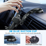 O suporte para telemóvel para automóvel com ventosa proporciona um suporte estável e adaptável para uma condução segura. O seu braço telescópico permite-lhe ajustar a distância e a posição do seu smartphone de acordo com as suas necessidades, enquanto a cabeça rotativa de 360° assegura um ângulo de visualização ideal. Fabricado em ABS e silicone antiderrapante, reduz eficazmente as vibrações e mantém os telemóveis até 7,2 polegadas firmemente no lugar. Fácil de instalar graças à sua poderosa ventosa, fixa-se firmemente ao painel de instrumentos para uma utilização prática e estável, mesmo em estradas irregulares.