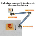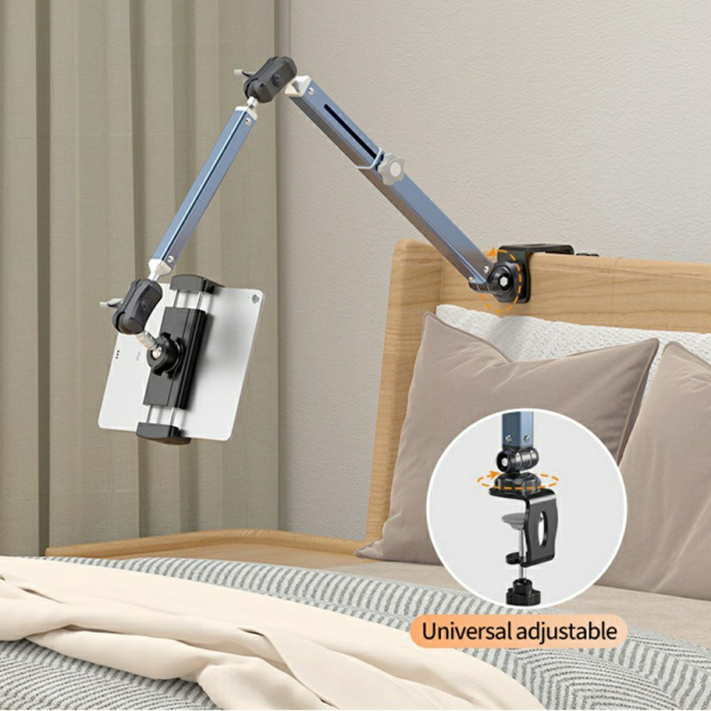 O suporte para tablet e telemóvel com ventosa dupla LS-T02 oferece uma solução estável, prática e versátil para utilização diária. Compatível com dispositivos de 4" a 12,9", segura smartphones e tablets de forma segura graças à sua grande pinça e às potentes ventosas. O seu sistema de rotação mecânica permite-lhe ajustar livremente o ângulo de visão para trabalhar, ver vídeos ou seguir uma receita. Dobrável e fácil de transportar, pode ser colocado numa secretária ou numa mesa de cabeceira. Fabricado em metal, plástico e silicone, combina durabilidade, conforto e segurança.