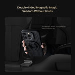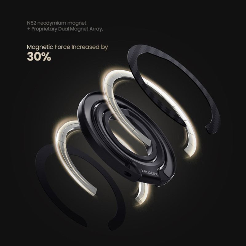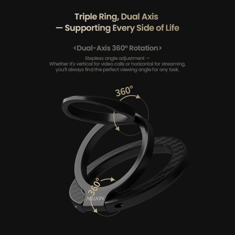 O suporte magnético rotativo ultra-fino com anel multi-ângulo combina elegância e inovação para uma utilização quotidiana topo de gama. Inspirado no conceito "Ordem e Liberdade", combina a leveza da fibra de aramida com o alumínio aeronáutico para um design refinado e duradouro. O seu anel de duplo eixo proporciona uma aderência confortável e estável, ideal para uma utilização segura do telemóvel. Graças à sua regulação angular infinita, pode ser utilizado tanto em modo retrato como em modo paisagem. A sua estrutura magnética de dupla face permite transições suaves entre diferentes suportes sem ter de retirar o suporte.