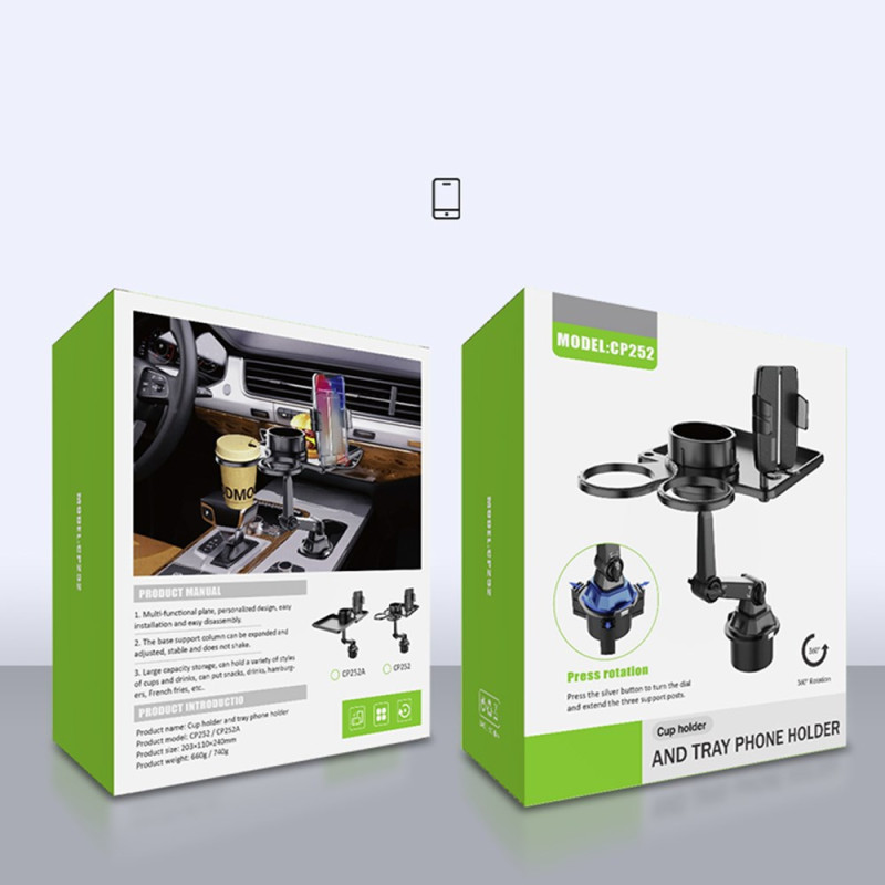 Este suporte universal para telemóvel transforma o seu suporte para copos num espaço de arrumação prático e seguro. Graças ao seu inovador tabuleiro duplo, pode manter uma bebida e pequenos objectos ao seu alcance ao mesmo tempo. O seu suporte ajustável acomoda smartphones de 6,8 a 10 cm de largura e mantém-nos seguros graças a um sistema de fixação física fiável, ideal para uma utilização em total segurança durante a condução. Fácil de instalar no suporte para copos existente no seu veículo, optimiza a organização interior, mantendo-se discreto, estável e duradouro.