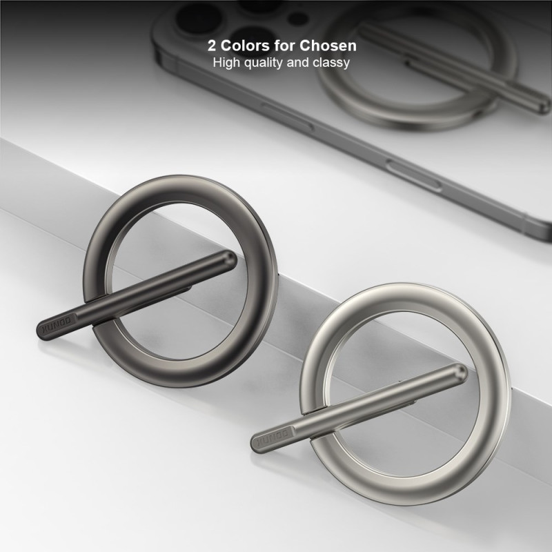 Este suporte magnético rotativo com anel da XUNDD é um acessório elegante e prático para proteger o seu telemóvel todos os dias. O seu potente anel magnético garante uma fixação estável e torna-o confortável de utilizar na mão para telefonar, enviar mensagens de texto ou navegar. Graças à sua rotação de 360°, permite um ajuste fluido entre os modos retrato e paisagem para uma visualização óptima. O seu design fino em liga de alumínio garante leveza, durabilidade e estilo moderno. Dobrável e compacto, cabe facilmente num bolso ou numa capa , o que o torna ideal para viajar.