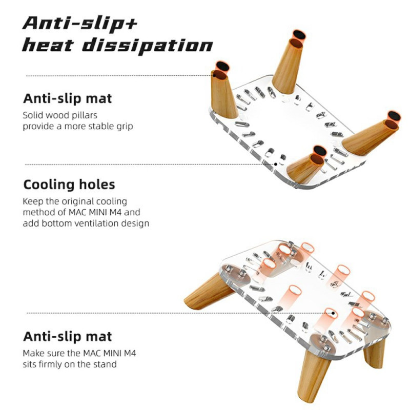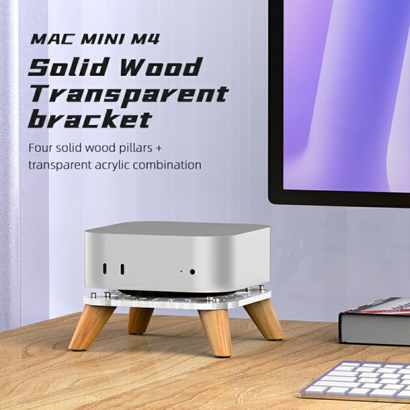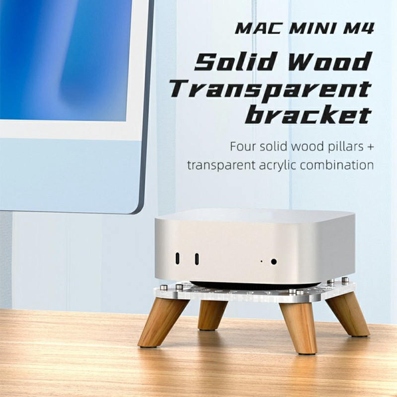 O suporte vertical WoodStand para Mac Mini M4 e M4 Pro oferece a combinação perfeita de estética e funcionalidade. Concebido exclusivamente para o modelo 2024, eleva o dispositivo em 40 mm para melhorar a circulação do ar e otimizar o arrefecimento. A sua estrutura, que combina quatro pés de madeira maciça e uma placa de acrílico de 5 mm, garante estabilidade e elegância. As almofadas antiderrapantes estão integradas tanto na base como nas pernas para garantir um ajuste perfeito. Cada peça é cuidadosamente polida à mão para dar um acabamento de primeira qualidade, ideal para realçar um escritório moderno.