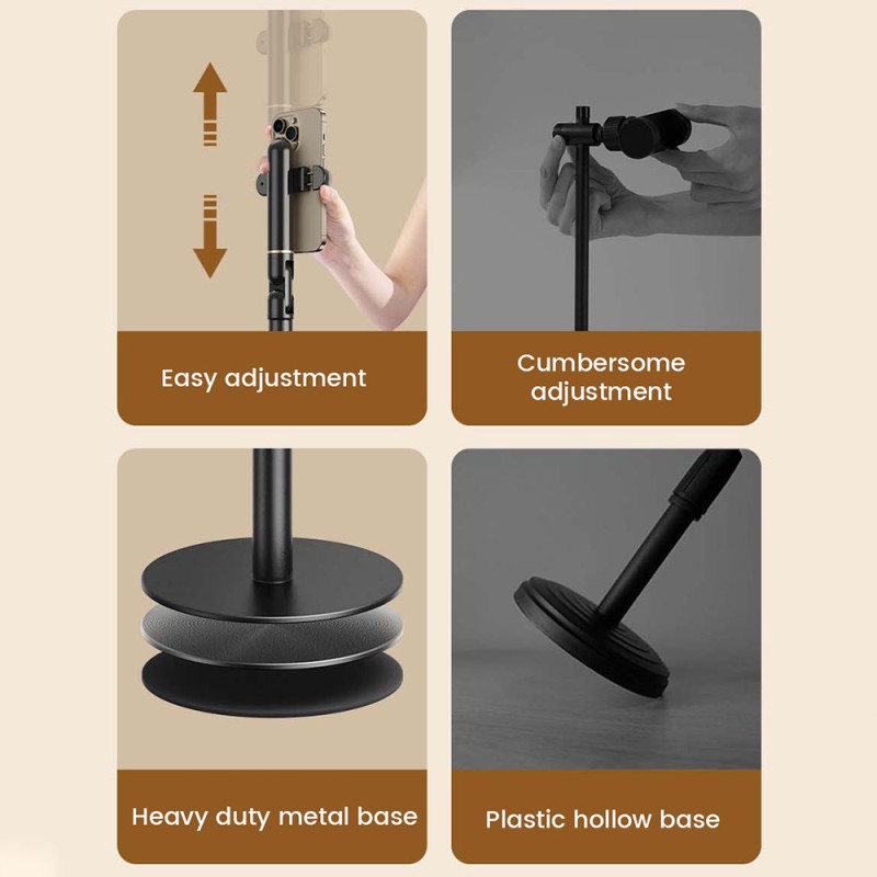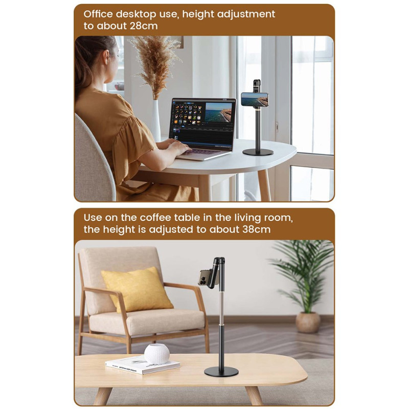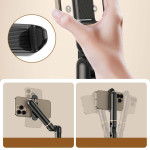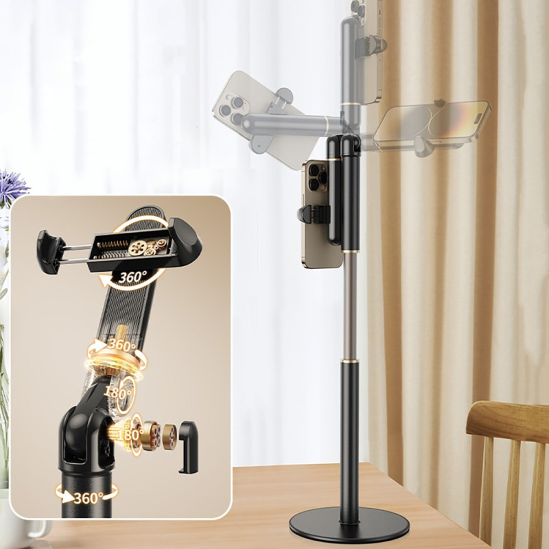 Este suporte de telemóvel extensível e rotativo é ideal para streaming, criação de conteúdos ou videoconferências. O seu braço ajustável de 53 a 63 cm facilita o ajuste da altura para um enquadramento perfeito, enquanto a rotação de 360° permite-lhe alternar rapidamente entre os modos retrato e paisagem. Fabricado em aço-carbono, liga de alumínio e ABS, oferece uma excelente estabilidade, mesmo ao tirar fotografias aéreas. Compatível com smartphones de 6 a 8 cm de largura, adapta-se à maioria dos modelos modernos. Sólido e compacto, é um suporte fiável para utilização diária.