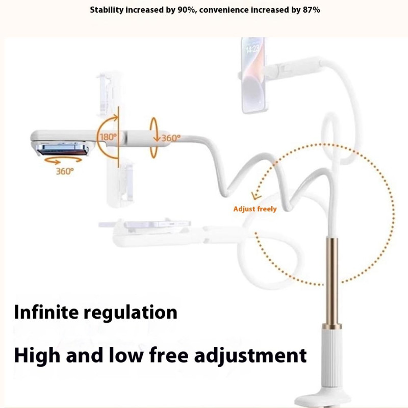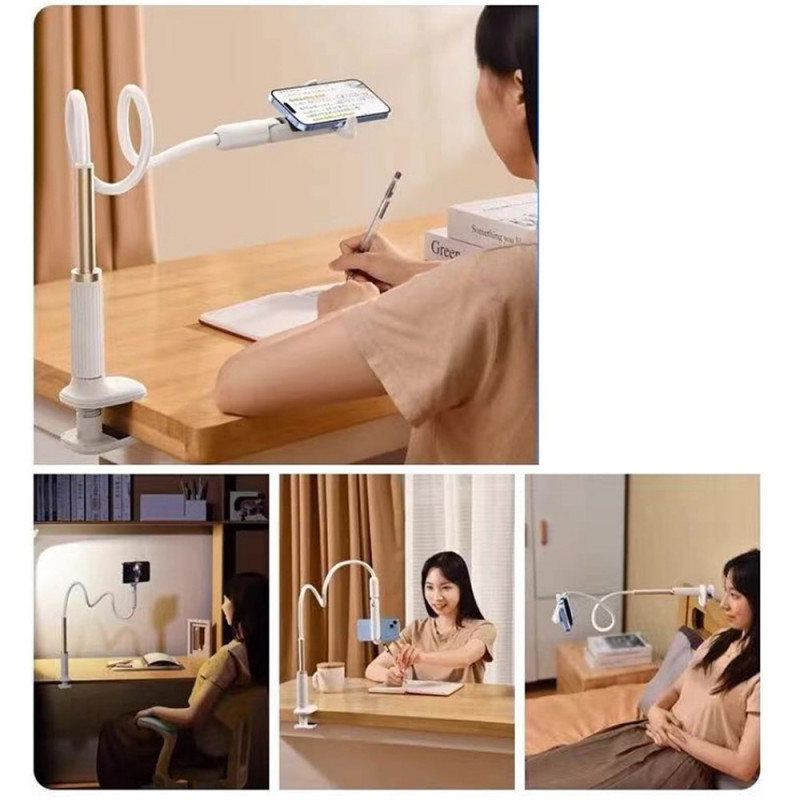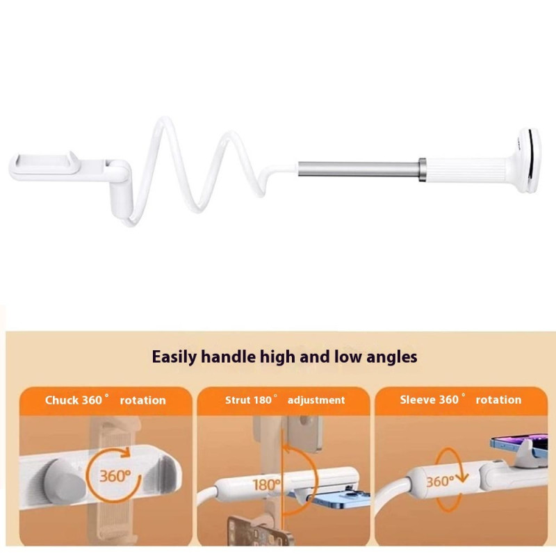 Este suporte de telefone de cabeceira flexível oferece total liberdade graças à sua impressionante rotação de 900°, permitindo-lhe ajustar o ângulo na perfeição para fazer streaming, videochamadas ou ver a partir da sua cama. O seu longo braço de 110 cm garante um alcance ideal, mantendo-se estável graças à sua estrutura em liga de alumínio, haste com núcleo metálico e plástico ABS resistente. O clipe forrado a silicone protege o seu smartphone ou tablet, garantindo uma fixação segura. Concebida para uma utilização confortável e sem mãos, adapta-se a todas as configurações de quarto.