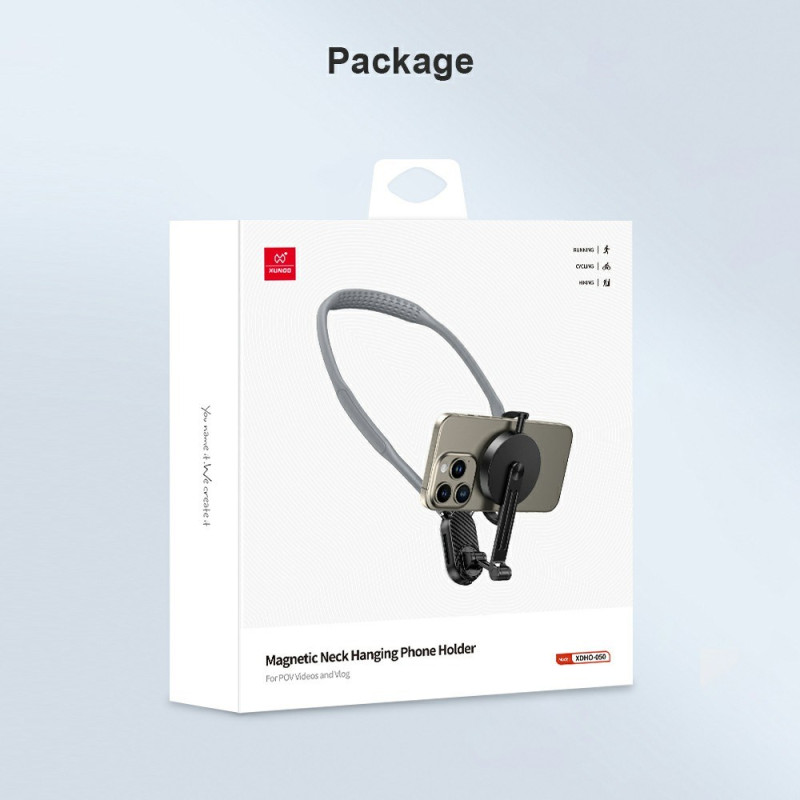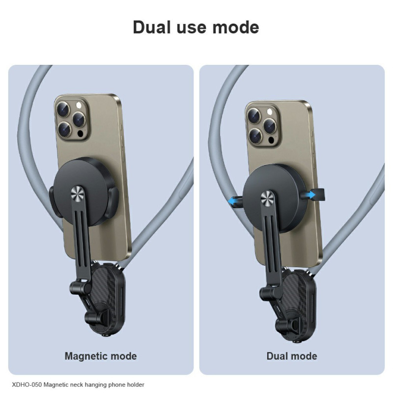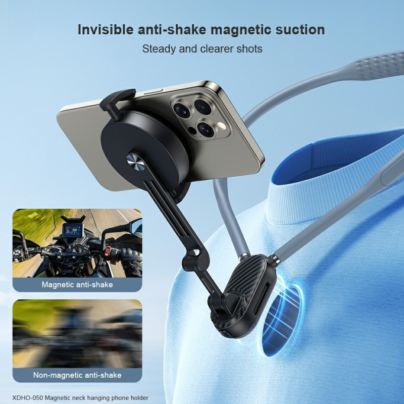 O suporte magnético para telemóvel com pescoço XUNDD XDHO-050 oferece um conforto excecional para filmar, seguir um tutorial ou utilizar o smartphone sem as mãos. A sua poderosa adsorção magnética mantém o telemóvel perfeitamente estável, mesmo em movimento. O seu design ergonómico com silicone expandido distribui o peso pelo pescoço, reduzindo a pressão e a fadiga do pescoço. A função anti-vibração integrada limita as vibrações para obter fotografias mais nítidas. Graças ao seu modo duplo - normal e magnético - é ideal para todos os tipos de utilização, seja para vlogging, desporto ou consulta em modo mãos-livres.