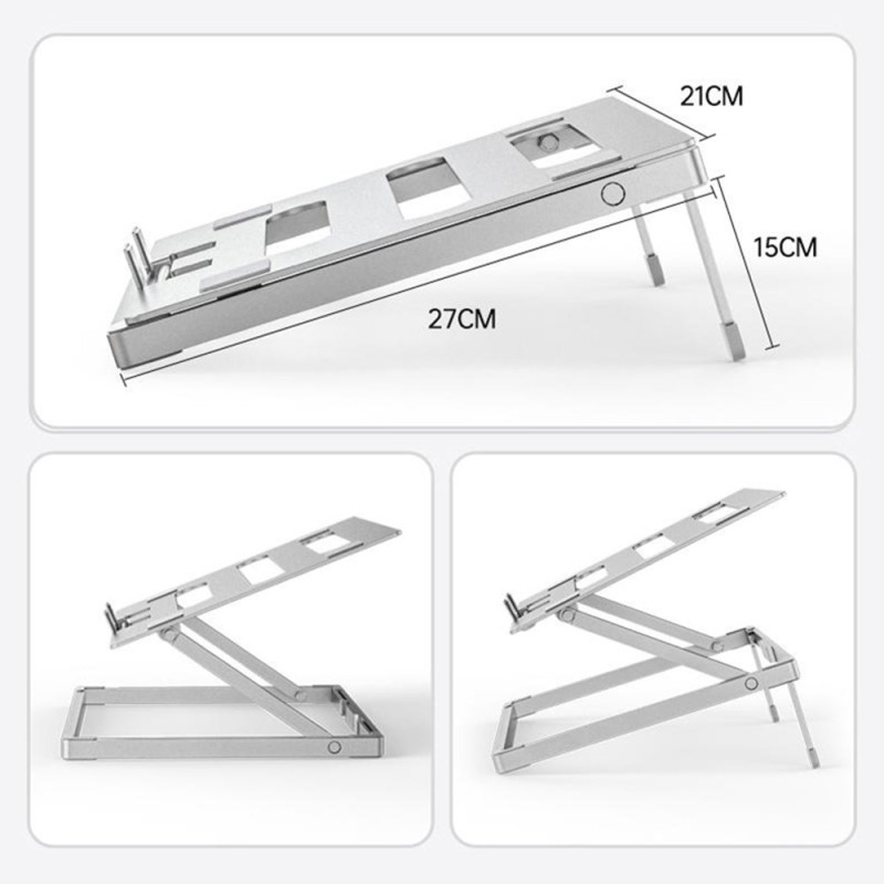 Este suporte ajustável para computador portátil foi concebido para melhorar o seu conforto de trabalho graças à sua elevação ergonómica e ângulo ajustável. Fabricado em liga de alumínio robusta, oferece uma excelente estabilidade e uma elevada capacidade de carga sem risco de queda. A sua estrutura perfurada permite a livre circulação do ar para evitar o sobreaquecimento, mesmo durante uma utilização prolongada. Leve e dobrável, é fácil de levar do escritório para casa. Ideal para melhorar a postura e reduzir a tensão nas costas, no pescoço e nos braços.