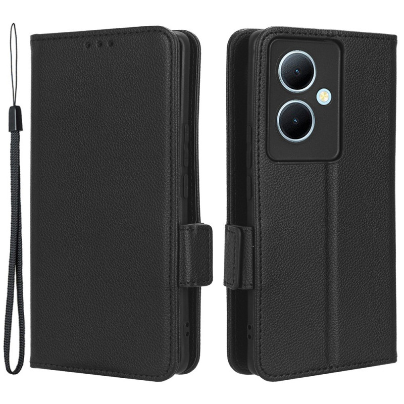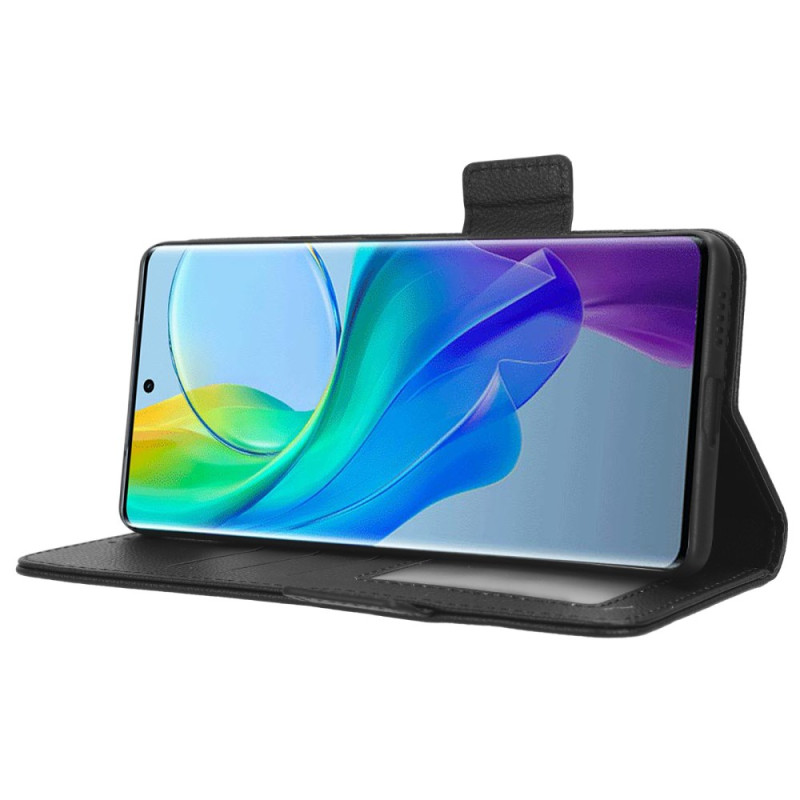 Capa elegante em pele PU texturada para o seu smartphone vivo. Inclui um fecho magnético seguro, vários compartimentos para cartões e dinheiro e suporte mãos-livres. Proteção integral contra choques diários, com alça de mão incluída.