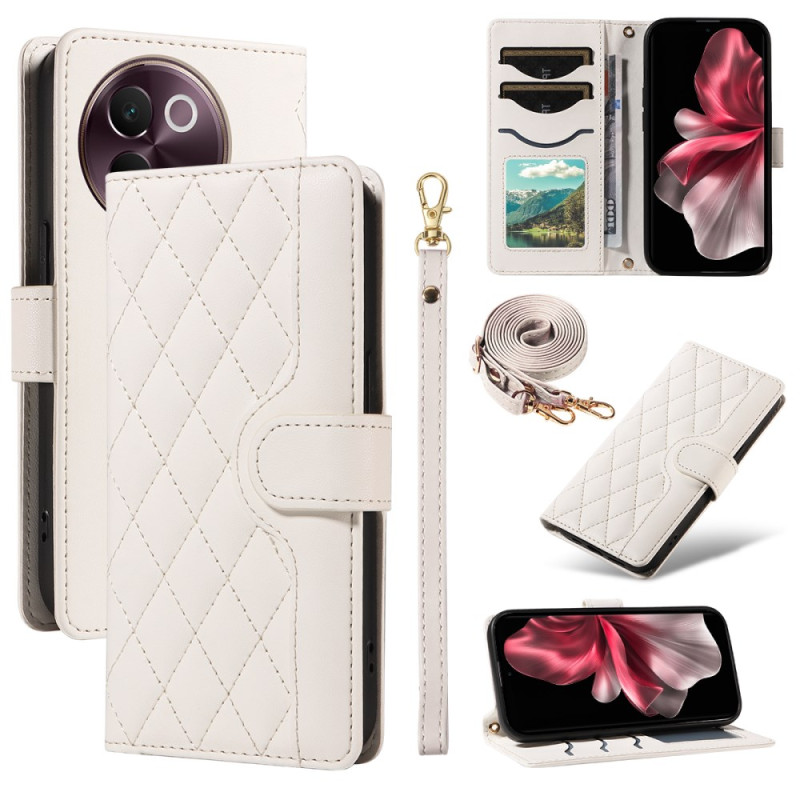 Descubra a combinação perfeita de estilo e funcionalidade com esta elegante capa para carteira. O seu design sofisticado com padrão de diamante protege o seu Vivo V40 Lite 5G, oferecendo 3 ranhuras para cartões e um bolso para dinheiro.