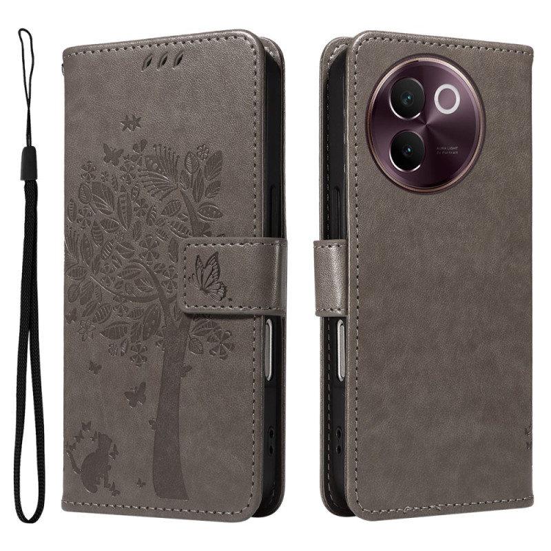 Proteja o seu Vivo V40 Lite 5G com estilo com esta capa multifunções. O seu design requintado com um motivo de gato e árvore, ranhuras para cartões e suporte integrado fazem dela o acessório ideal para o dia a dia.