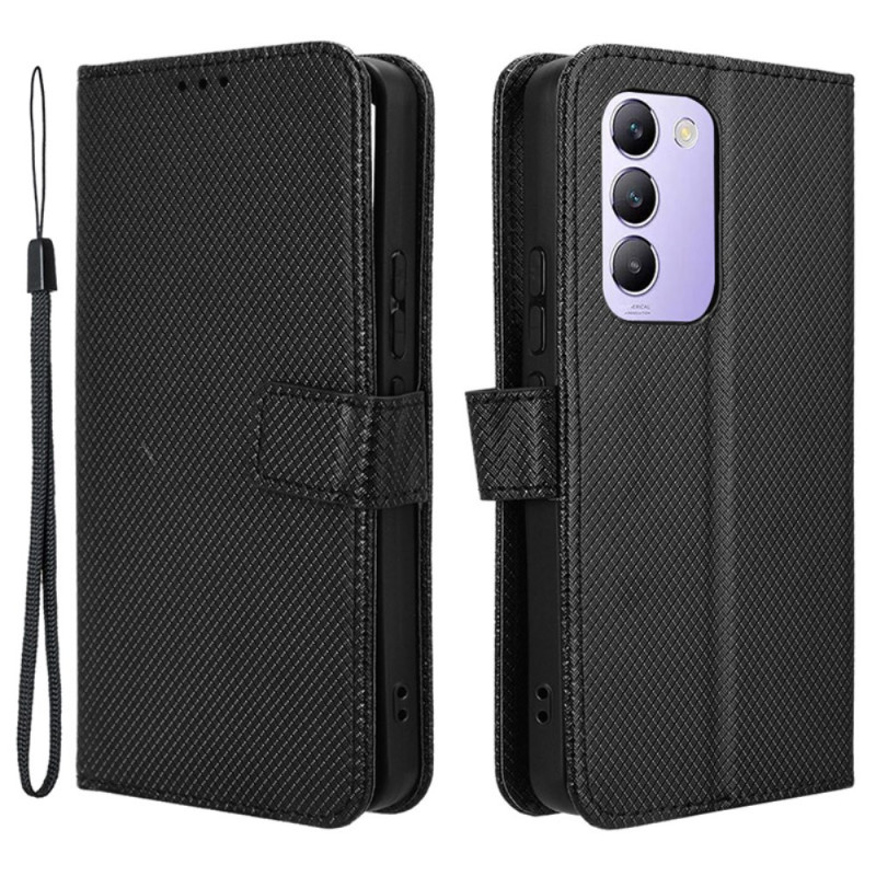 Descubra esta elegante capa com aba e textura de diamante para o seu smartphone Vivo V40 SE 5G. Com ranhuras para cartões, um suporte dobrável e fecho magnético, combina estilo e funcionalidade. Proteção total contra choques e riscos.