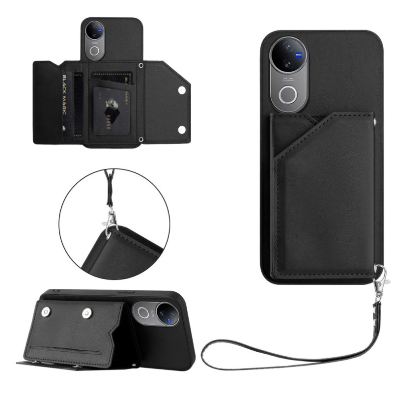 Proteja o seu Vivo V50 5G / V50e 5G com estilo com esta capa multifunções. Com suportes para cartões integrados, um suporte prático e uma alça de mão a condizer, combina estilo e praticidade no dia a dia para uma proteção óptima.