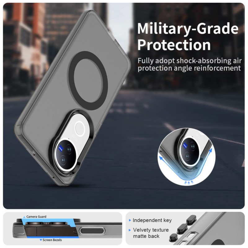 Proteja o seu Vivo V50 5G com esta capa híbrida premium compatível com MagSafe. Design resistente a choques com materiais de primeira qualidade, cantos elevados para proteger o ecrã e a câmara e carregamento magnético sem fios ideal. Design fino e elegante.
