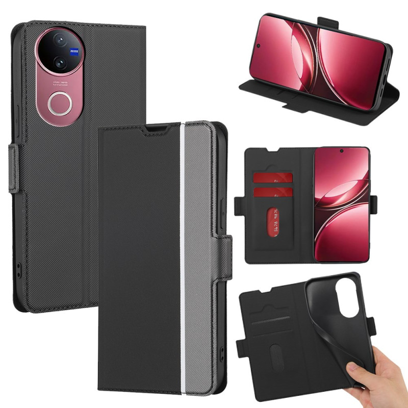 Descubra esta elegante capa em pele PU texturada para o Vivo V50 5G. Com duas ranhuras para cartões, suporte mãos-livres e um fecho magnético seguro, combina um estilo requintado com uma proteção completa para uma utilização diária.