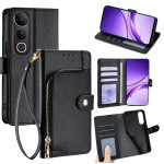 Capa multifunções para carteira para o Vivo V50 Lite 5G com uma elegante textura de cera de óleo. Inclui ranhuras para cartões, bolso exterior com fecho de correr, suporte dobrável e fecho magnético seguro. Proteção completa contra choques e quedas.