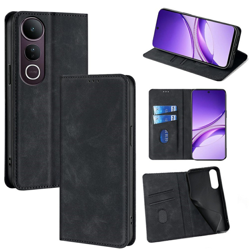 Capa elegante em pele PU com suporte para cartões integrado e fecho magnético para o Vivo V50 Lite 5G. Design prático com suporte de visualização ajustável e proteção reforçada da câmara. Combine estilo e funcionalidade para uma utilização quotidiana.