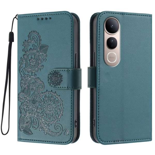 Capa elegante em pele PU com motivos de mandala para o Vivo V50 Lite. Proteção contra choques, fecho magnético de dupla face, suporte integrado e alça de mão prática. Combina o telemóvel e a carteira num único acessório.