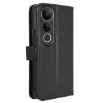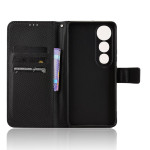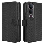 Capa elegante para carteira com textura de diamante refinada para o Vivo V50 Lite. Inclui compartimentos para cartões, bolso para dinheiro, suporte dobrável e fecho magnético seguro. Proteção total contra choques e riscos do dia a dia.
