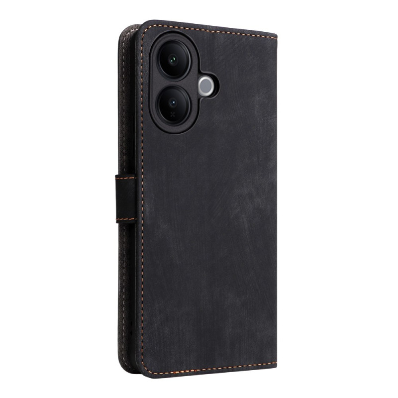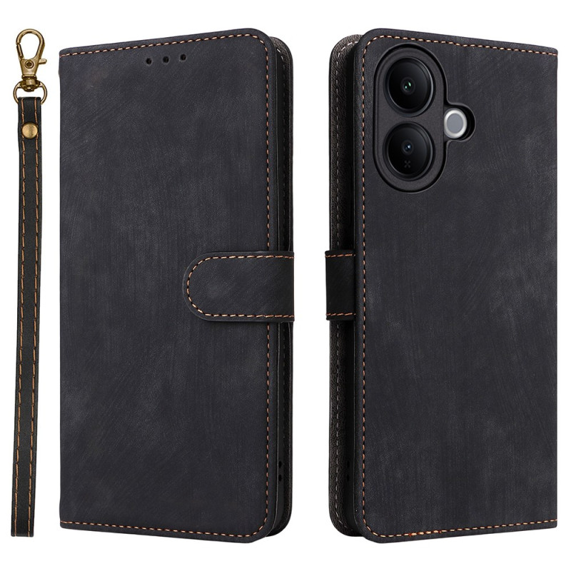 Capa multifunções em pele PU para Vivo V60 Lite 5G. Proteção RFID integrada, 3 ranhuras para cartões, suporte mãos-livres e fecho magnético. Combine estilo, segurança e praticidade no dia a dia com a alça de mão incluída.