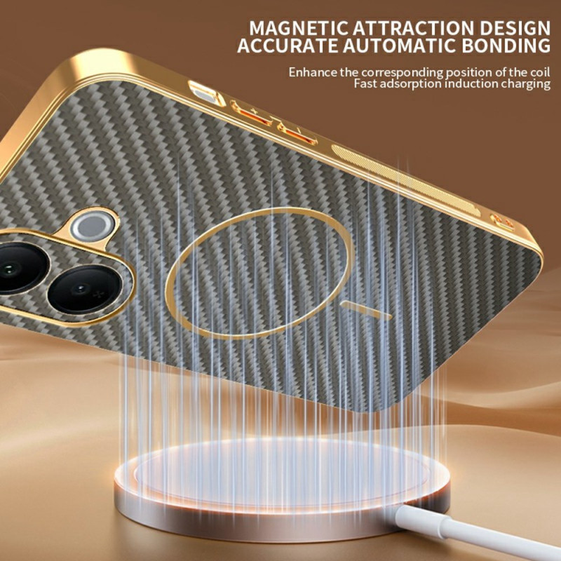 Proteção elegante e robusta para o seu Vivo V60 Lite. Design TPU flexível com acabamento electrodepositado de alta qualidade e textura de fibra de carbono. Resiste às impressões digitais e oferece uma proteção óptima contra choques e riscos.