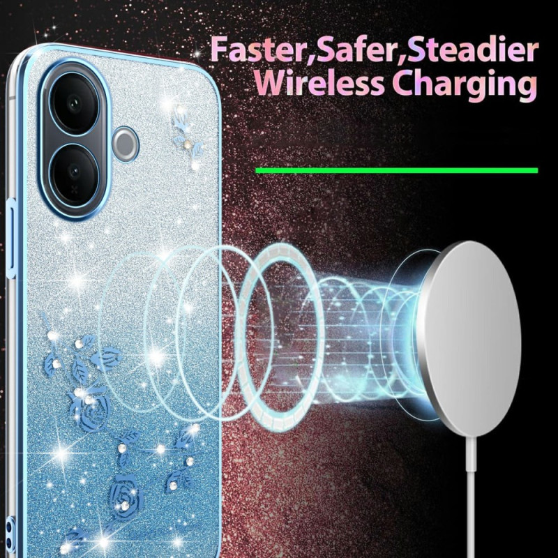 Proteja o seu Vivo V60 Lite com estilo com esta elegante capa com uma flor eterna e pedras brilhantes. O seu design com brilho gradiente dá um toque glamoroso e moderno ao seu telemóvel, ao mesmo tempo que o protege.