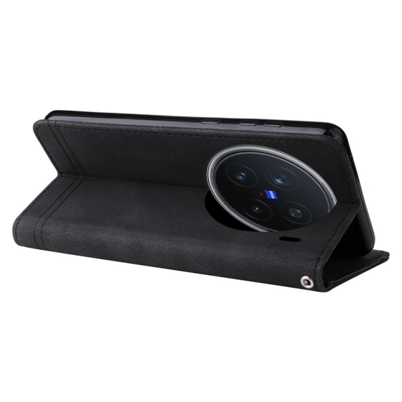 Descubra esta elegante capa tipo carteira para o Vivo X200 Pro 5G. Design prático 2 em 1 com várias ranhuras para cartões, suporte dobrável para visualização em mãos-livres e correia de pulso segura. Proteção total de 360° contra choques e riscos.
