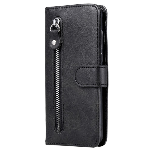 Porta-moedas elegante em pele PU texturada com fecho de correr seguro. Inclui várias ranhuras para cartões, um compartimento com fecho para pequenos objectos e uma função de suporte. Proteção total de 360° com revestimento TPU robusto.