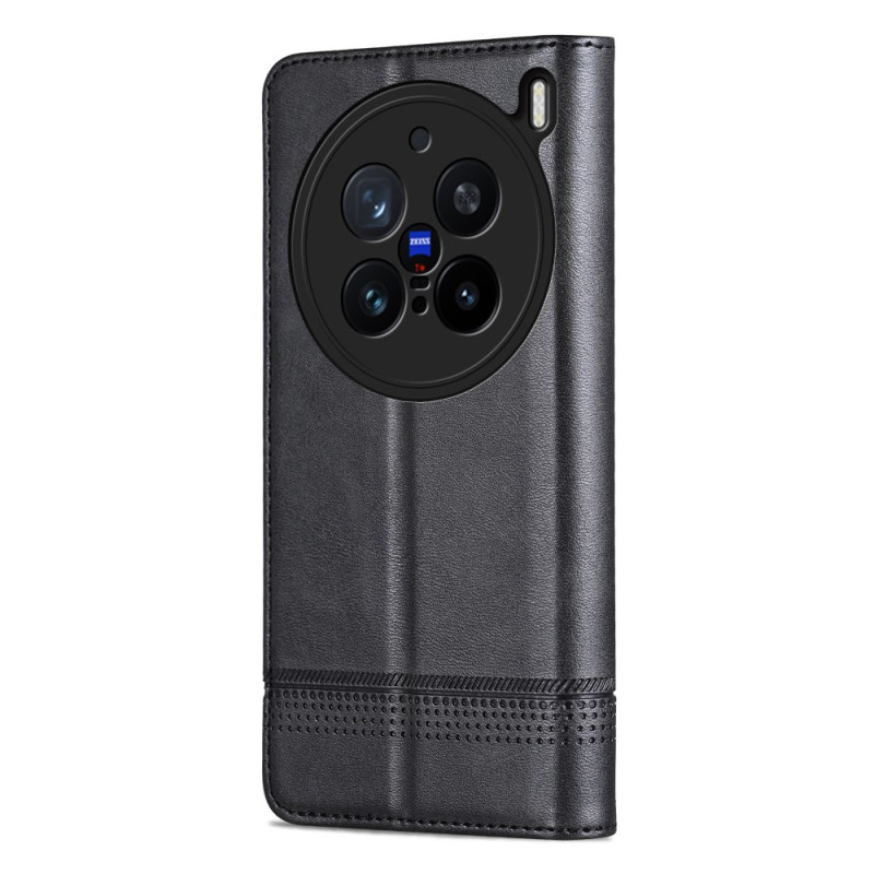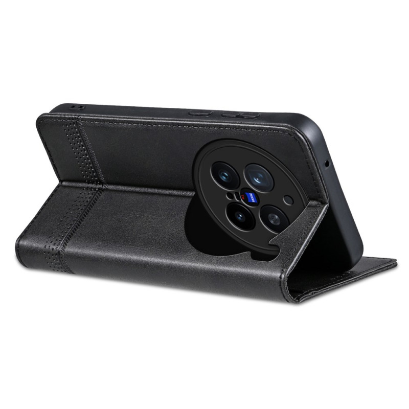Capa elegante em pele PU com textura autêntica para o Vivo X200 Pro 5G. Com ranhuras para cartões, bolso para notas e função de suporte ajustável. Fecho magnético seguro e proteção completa para o seu telefone.