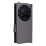 Capa elegante em pele PU texturada para o Vivo X200 Pro 5G. Inclui ranhuras para cartões, suporte para mãos livres e uma prática correia de mão. Proteção total contra choques diários com fecho magnético seguro.