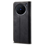 Proteja o seu vivo X200 5G com estilo com esta capa em pele PU com um design retro com textura de ganga. Com um prático suporte mãos-livres, 2 ranhuras para cartões e um bolso lateral, combina estilo e funcionalidade.