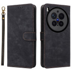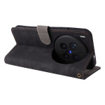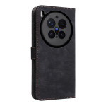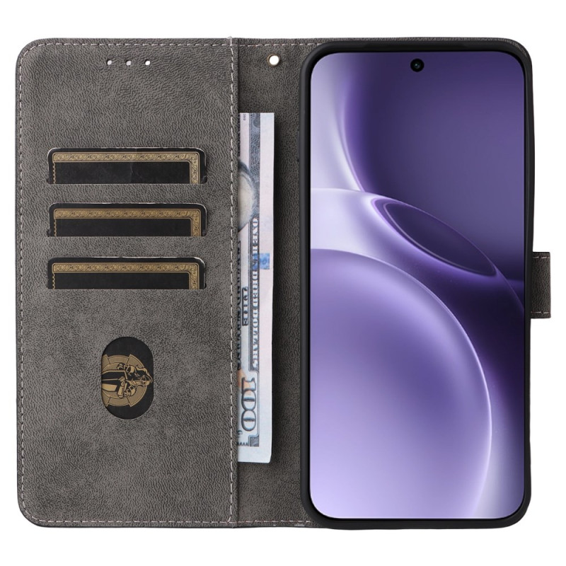 Capa elegante em pele PU para Vivo X300 Pro 5G com bloqueio RFID, 3 ranhuras para cartões, suporte mãos-livres e correia para o pulso. Proteção completa contra choques diários com fecho magnético seguro.