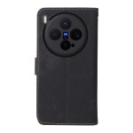 Capa elegante para o Vivo X300 5G com proteção RFID integrada. Inclui 3 ranhuras para cartões, 1 compartimento para notas, função mãos-livres e correia de pulso. Oferece uma proteção completa com fecho magnético seguro.