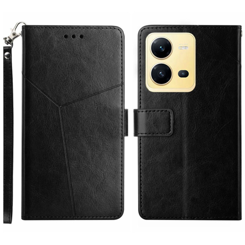 Capa elegante com motivo de linha em Y gravado. Design de livro com aba magnética, suporte ajustável e compartimentos para cartões. O revestimento interior flexível protege contra choques e riscos. Inclui uma correia de pulso para maior segurança.
